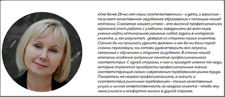 Основатель компании Нина Колташова гордится, что отправила учиться за границу более 17 тысяч талантливых русских // Скриншот с сайта itecgroup.ru
