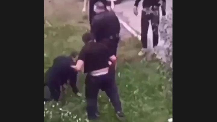 Бородатые подростки Нефтеюганска пинают "лежачего полицейского". Скриншот: соцсети