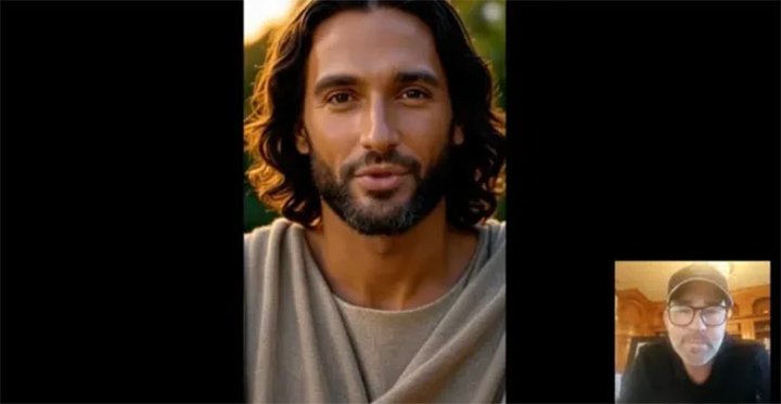Заплатил – и общайся: на экране, весь в золотом свечении, появляется аватар с хорошо узнаваемым лицом актёра Джонатана Руми, сыгравшего Иисуса в сериале "Избранные".
