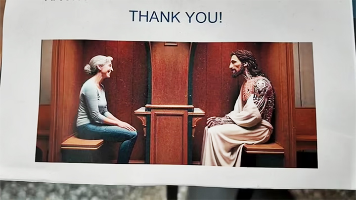 Некая "технологическая компания" под названием Just Like Me запустила сервис, который позволяет пользователям общаться по видеосвязи с искусственным интеллектом, имитирующим образ Сына Божьего. "Уникальная возможность" оценивается разработчиками недорого: можно оплачивать беседу поминутно всего-то за 1,99 доллара, а можно приобрести пакет на целый месяц за 49,99 "зелёных".