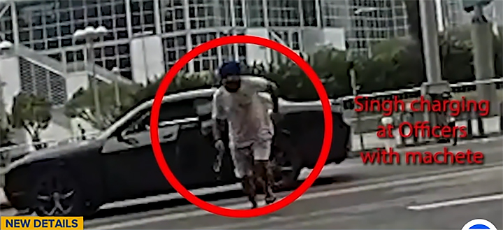 Обдолбавшийся "воин" бежит на полицейского с мачете. Скриншот: abc7.com