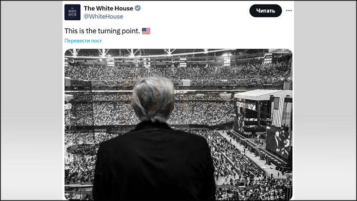 Белый дом опубликовал фото Трампа с церемонии прощания с Кирком с подписью: "Это поворотный момент". Скриншот: Соцсеть Х