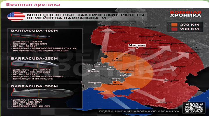 Докуда могут долететь ракеты Barracuda. Скриншот с канала "Военная Хроника"