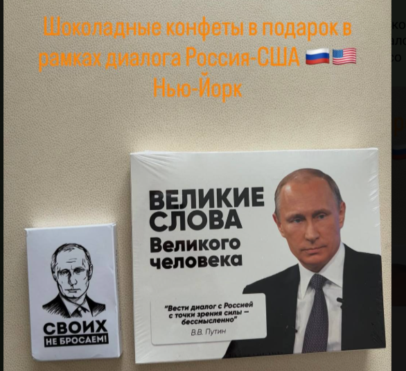 В субботний вечер спецпредставитель нашего Верховного главнокомандующего опубликовал в своём телеграм-канале весьма интересные фото, подписанные следующим образом: "Шоколадные конфеты в подарок в рамках диалога Россия - США". На коробке изображено фото Путина с надписью "Великие слова Великого человека". На каждой сладости запечатлены известные цитаты, озвученные Владимиром Владимировичем. Одна из них принадлежит русскому дипломату Александру Горчакову: "Россия не сердится. Россия сосредотачивается".