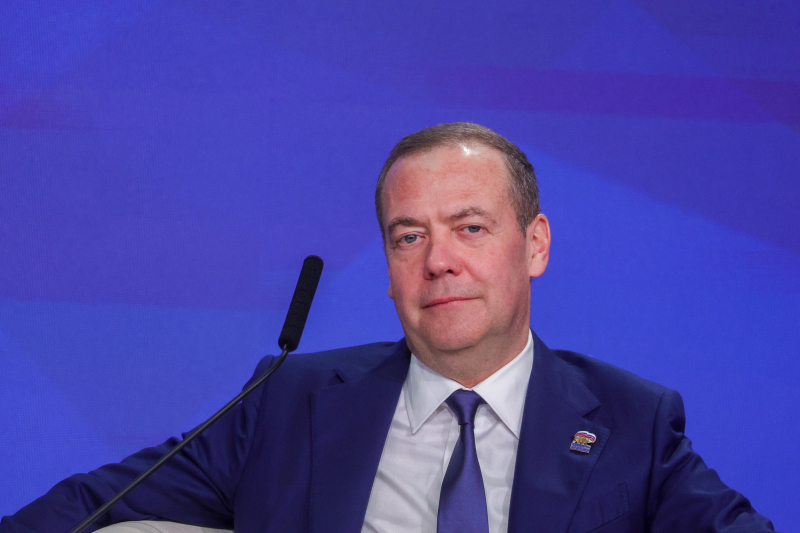 Зампред Совбеза России Дмитрий Медведев неожиданно перешёл на украинский язык и спародировал Владимира Зеленского после его обращения к народу в связи с появлением американского мирного плана. "Шановнi друзi", - начал он, высмеивая украинского политика.