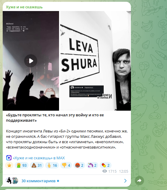 Лёва* Би-2 когда-то уезжал из России громко, показательно. С проклятиями и обвинениями во "вторжении" на Украину. Русских называл "животными" и "убийцами".