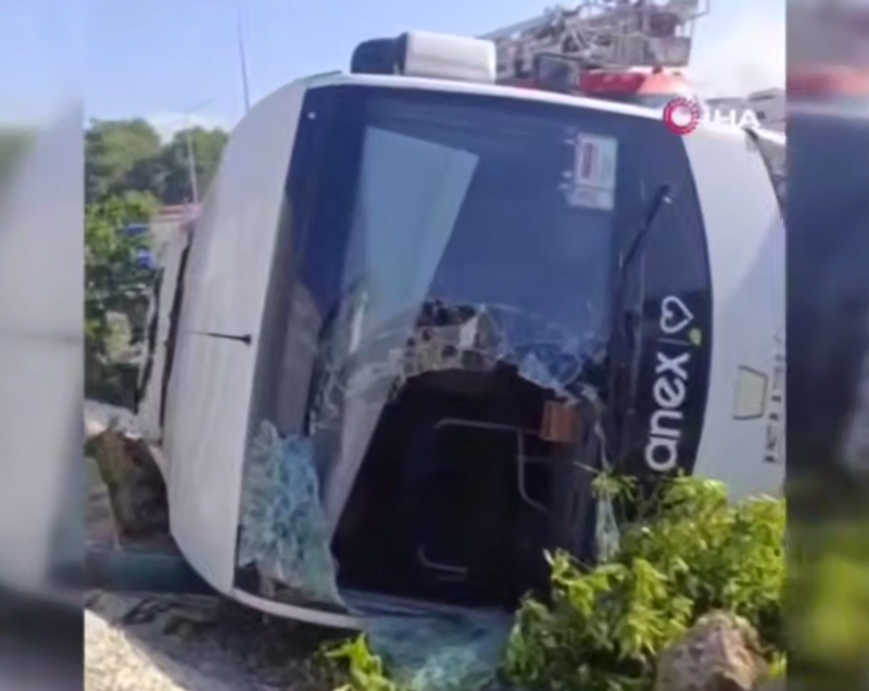 Предполагается, что водитель потерял управление и вылетел в кювет в возле Гюндогду на бульваре Мустафа Бея. Упавший автобус при этом успел врезаться в расположенную по близости теплицу.