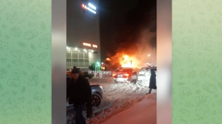 Огонь охватил торговые павильоны у ТЦ "Авиатор" в Кубинке